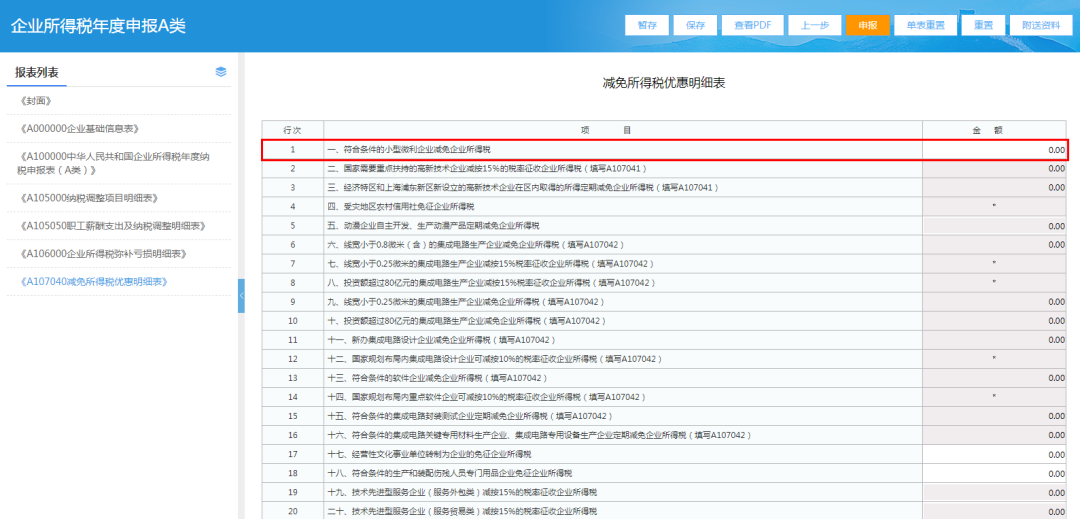 以《中华人民共和国企业所得税年度纳税申报表(A类,2017年版)》(A107040)为例: