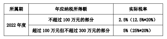 自2022年1月1日至2024年12月31日,对小型微利企业年应纳税所得额超过100万元但不超过300万元的部分,减按25%计入应纳税所得额,按20%的税率缴纳企业所得税。